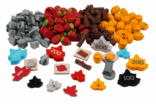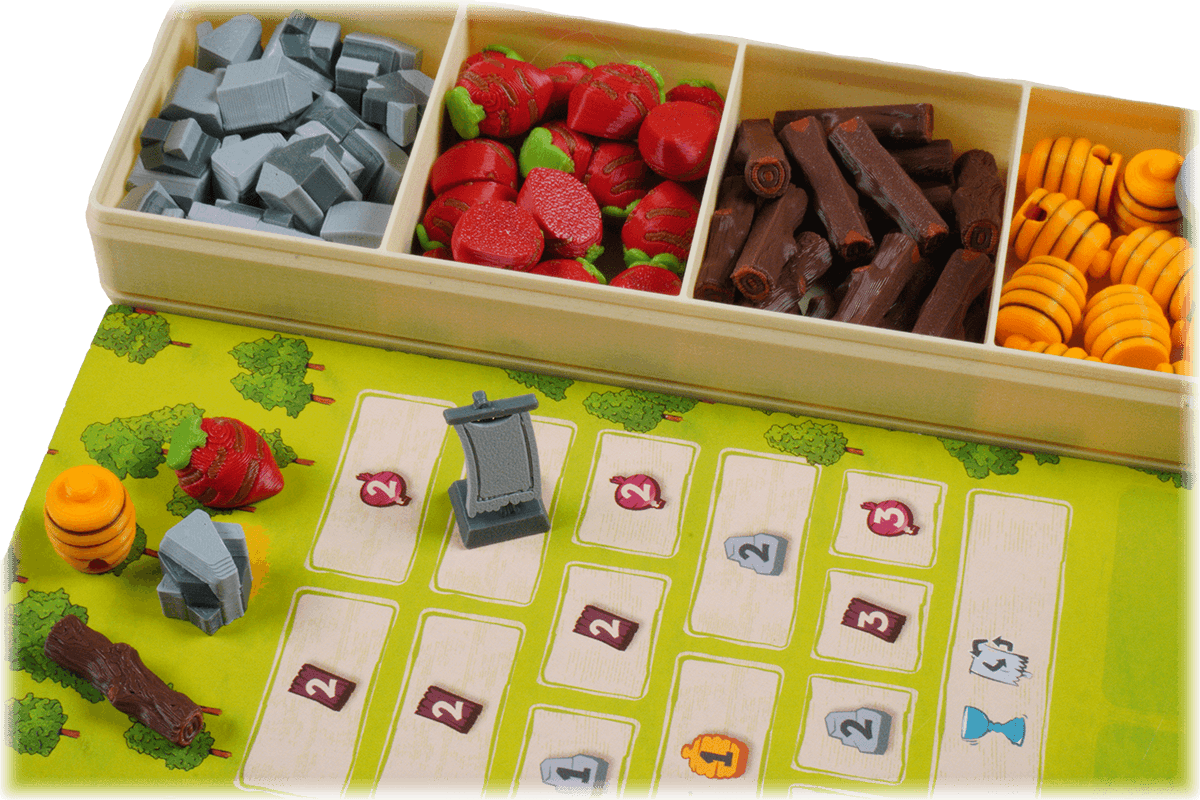 Bienenstock, Stein, Holz und Nahrung werden zu echten Hinguckern auf dem Tisch. Mehrfarbig, präzise gefertigt und mit angenehmer Haptik bringen die 3D-Token spürbar mehr Tiefe ins Spiel. Sie passen perfekt ins Lager auf dem Spielplan und sorgen für Übersicht, Ordnung und ein rundum wertiges Spielgefühl.
